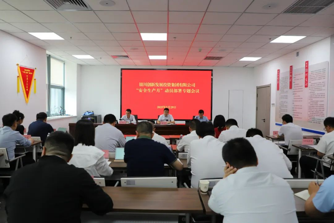 為切實(shí)做好銀川創(chuàng)投集團(tuán)2025 年“安全生產(chǎn)月”系列活動(dòng)謀劃部署,扎實(shí)推進(jìn)各項(xiàng)工作有序開展,根據(jù)自治區(qū)、銀川市安委辦及市國資委對“安全生產(chǎn)月”活動(dòng)的部署要求,按照銀川創(chuàng)投集團(tuán)安全生產(chǎn)工作具體安排,5月29日,銀川創(chuàng)投集團(tuán)安委會(huì)組織召開“安全生產(chǎn)月”活動(dòng)動(dòng)員部署會(huì)議。集團(tuán)本部全員和各二級(jí)公司主要負(fù)責(zé)人、安全生產(chǎn)分管領(lǐng)導(dǎo)、安全管理部門負(fù)責(zé)人參加了本次會(huì)議。