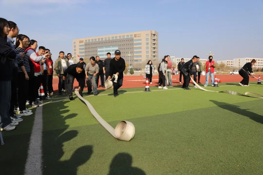 來自集團(tuán)本部、產(chǎn)融公司、濱投公司、綜投公司、土投公司共5支代表隊(duì)的70余名干部職工參加了此次技能競(jìng)賽活動(dòng)。本次比賽根據(jù)集團(tuán)本部及各二級(jí)公司工作實(shí)際,共設(shè)置了連接水帶接力、滅火器接力滅火、接力穿脫消防服、傷員緊急救治、佩戴防煙面罩模擬逃生共5項(xiàng)實(shí)戰(zhàn)項(xiàng)目,真實(shí)模擬了日常工作中遇到突發(fā)火災(zāi)時(shí),正確處置火情、有序開展自救互救的場(chǎng)景,不僅檢驗(yàn)了干部職工應(yīng)急技能的掌握程度,更體現(xiàn)了團(tuán)隊(duì)協(xié)同配合與應(yīng)急反應(yīng)能力。