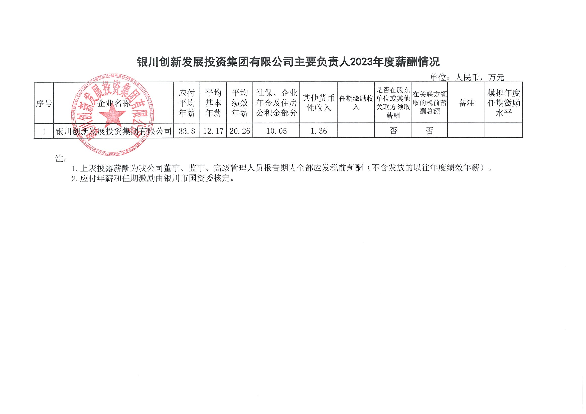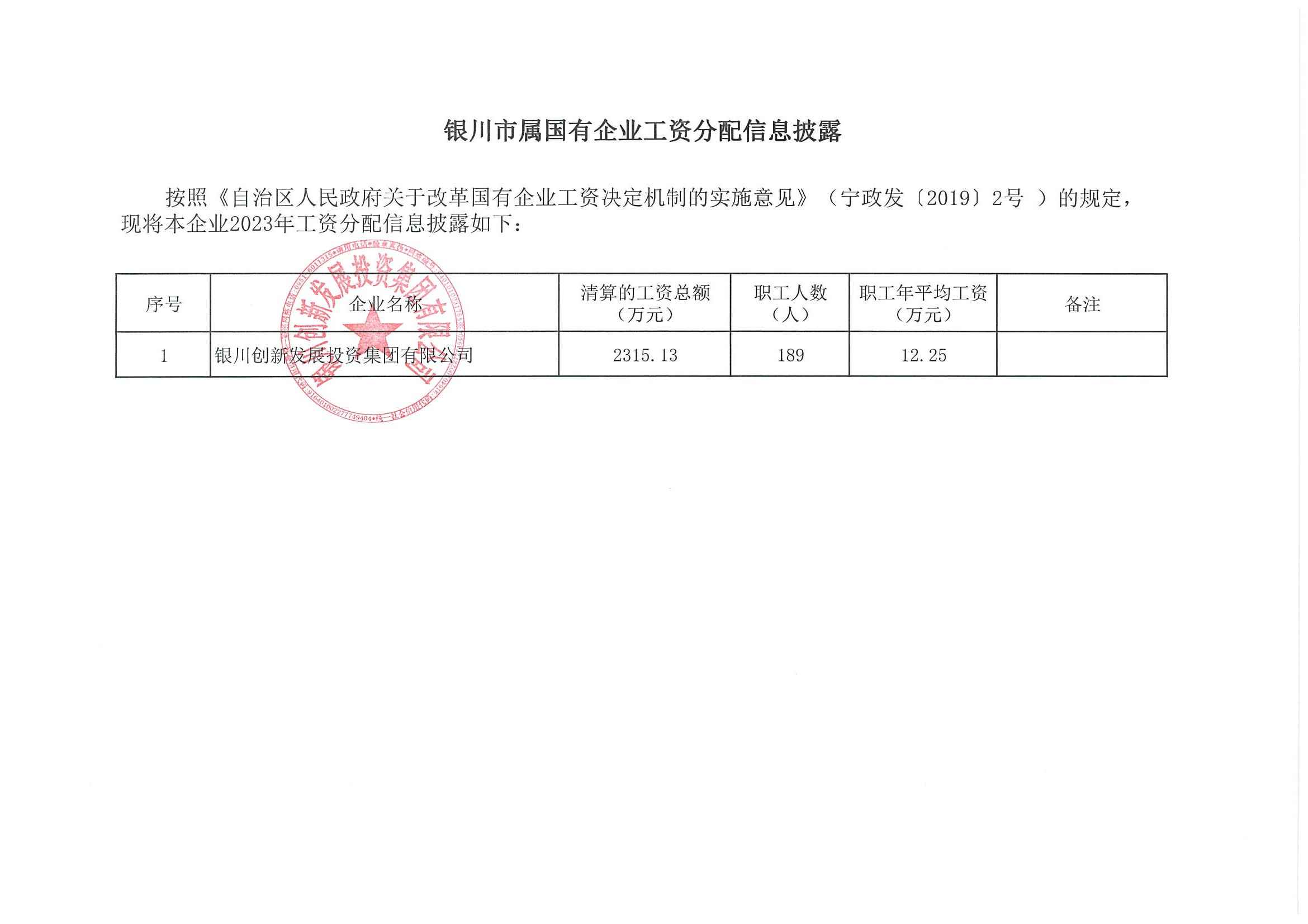 銀川創(chuàng)新發(fā)展投資集團(tuán)有限公司2023年薪酬分配情況公示